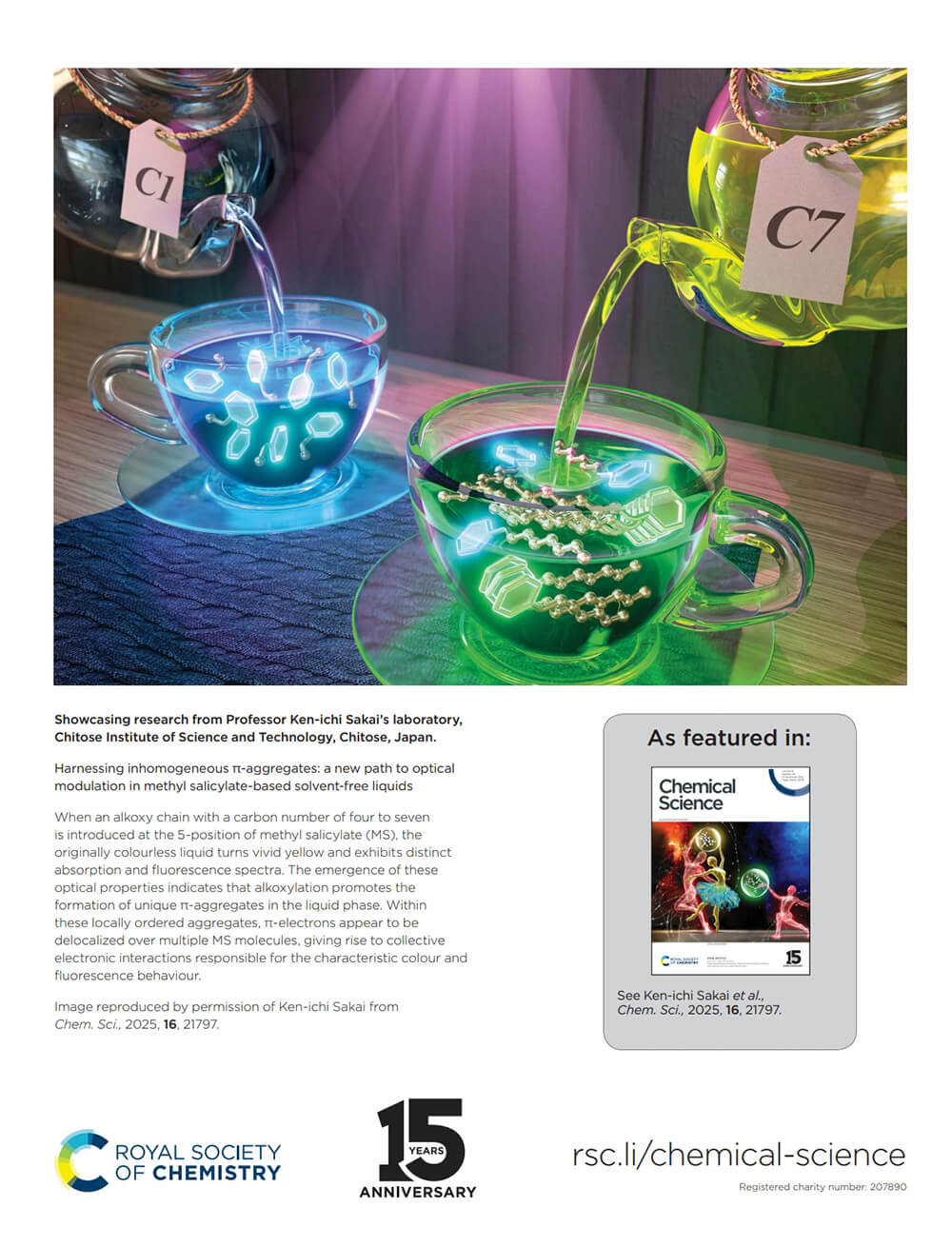 弊社で制作しました東北大学 出倉駿先生よりご依頼のカバーアートが、 イギリスの王立化学会発行の学術雑誌 Chemical Science(2025年11月発刊)に採用されました。